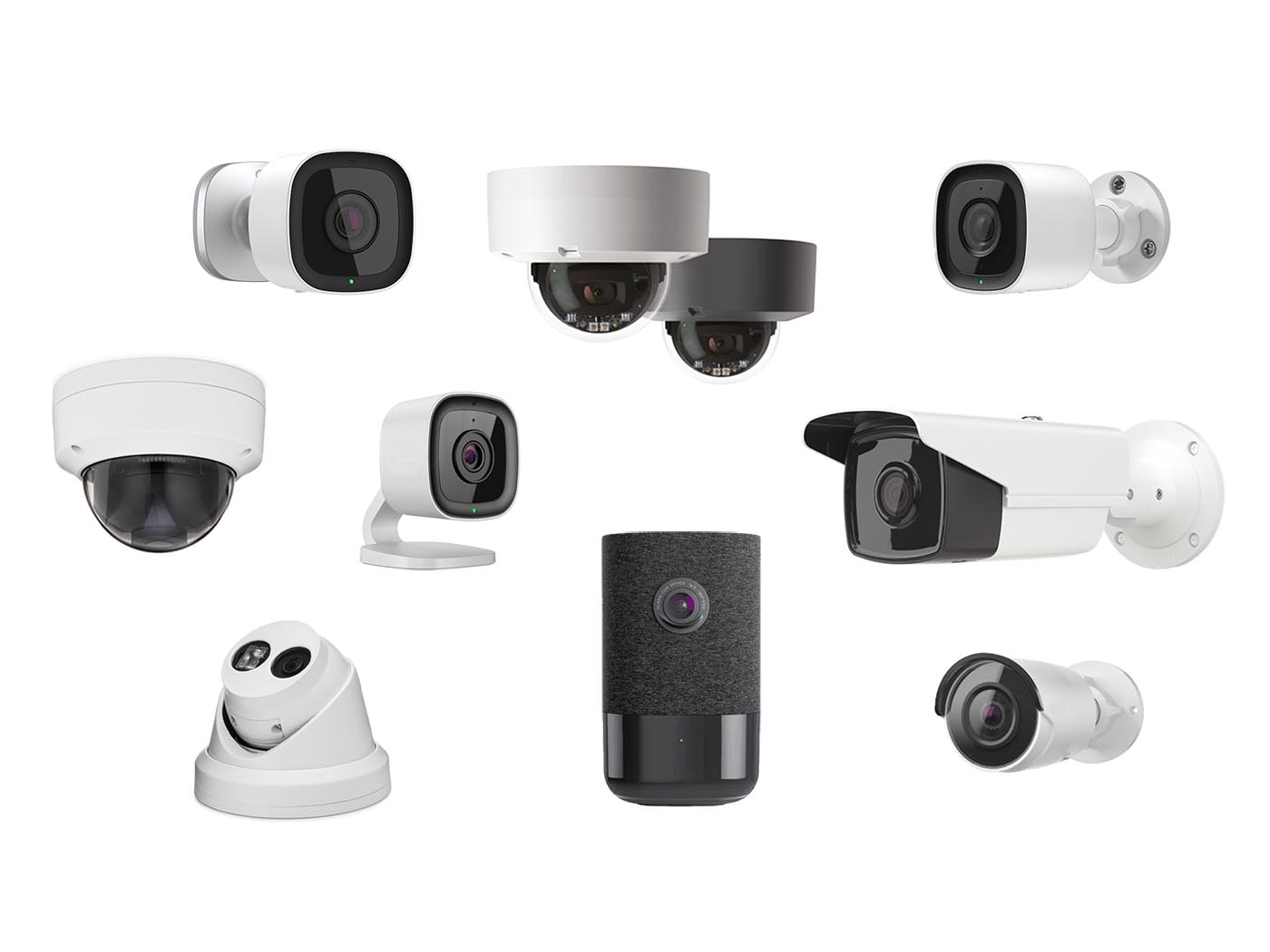 Alle vores kamera som er tilsluttet vores smart video cloud vil have muligheden for de forskellige smarte AI funktioner. Vi har alle former for indvendige kamera, kablet som trådløse med 2- vejs tale og lyd. Det kan være fra de små indvendige Wi-Fi modeller med dag/nat overvågning til de større udvendige kamera.