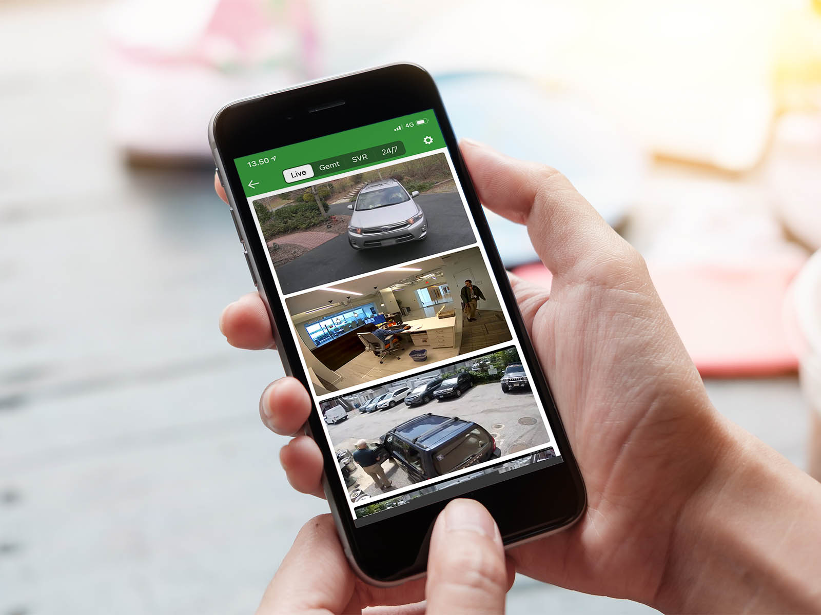 Når man modtager push besked med alarm billeder på telefonen, kan man blot trykke på den modtaget Push besked og på få sekunder er man live på sikkerhedskameraet som opdagede en person som ikke børe være der efter lukketid.