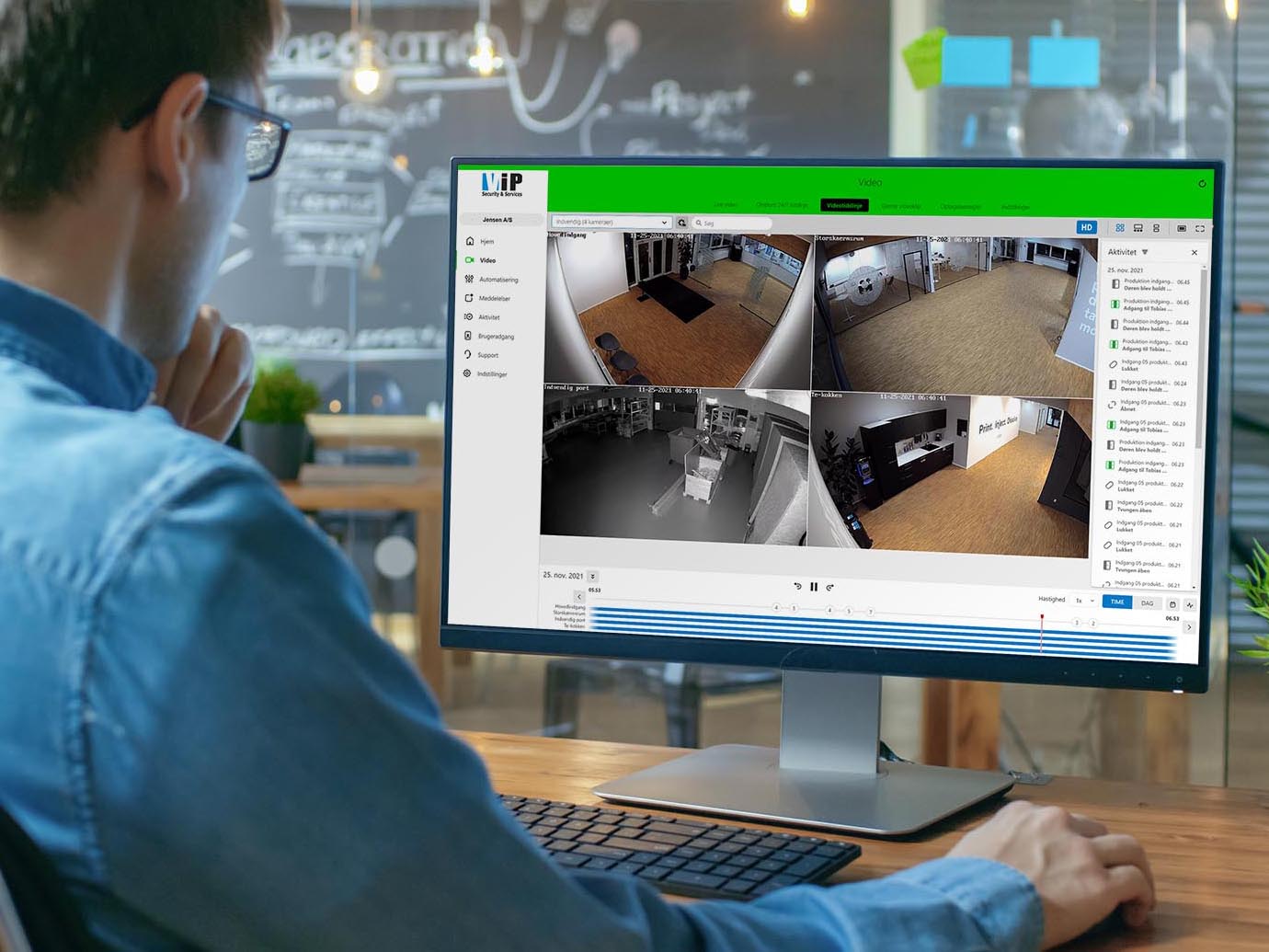 Ved brug af vores web. interface har man altid adgang til alle video optagelser. Video systemet har en hurtig og smart søgning så man får det fulde overblik fra alle kamera. Ved brug af vores videoserver kombineret med cloud optagelser, vil man kunne sammensætte alle videokamera med alle hændelser fra virksomhedens alarmsystem samt adgangskontrol m.m.