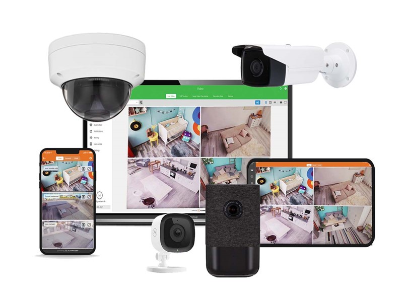 Skulle behovet ikke blot være kamera overvågning men også alarm system og adgangskontrol på dørene måske, så kan vi i dag sammensætte det hele til Et fælles sikrings system.